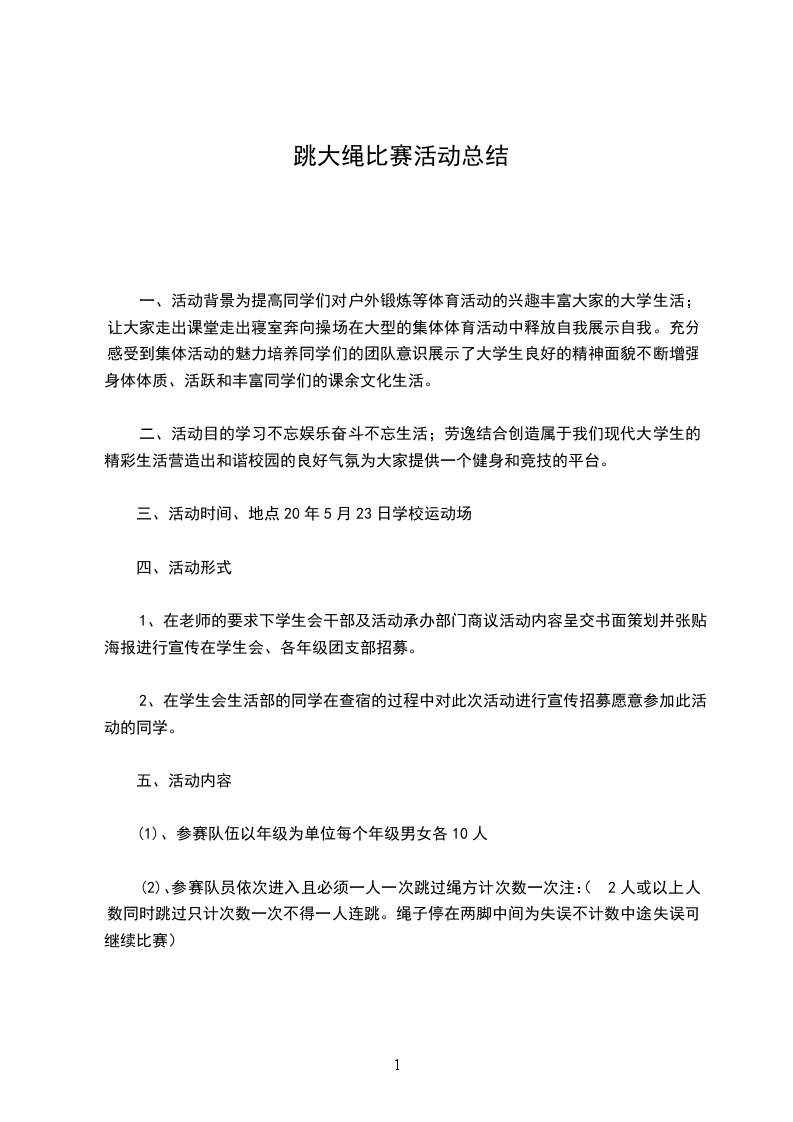 三、活动目的:增强同们的身体素质,培养同学的课外兴趣,发掘有跳绳踢毽子才能的同学。也为了丰富学生的校园生活,增强同学之间的互相了解,促进同学之间的友好相处,使得校园气氛更加活跃。