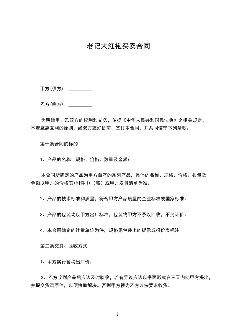 第一条合同的标的