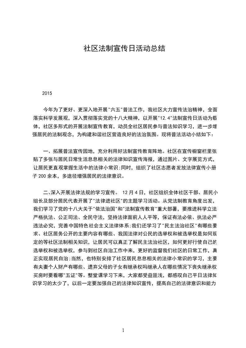 今年为了更好、更深入地开展"六五"普法工作,我社区大力宣传法治精神,全面落实科学发展观,深入贯彻落实党的十八大精神,以开展"12.4"法制宣传日活动为载体,社区多形式的开展法制宣传教育,动员全社区居民参与普法知识学习,进一步增强居民的法制观念,为构建和谐社区营造良好的法治氛围。现将普法活动小结如下: