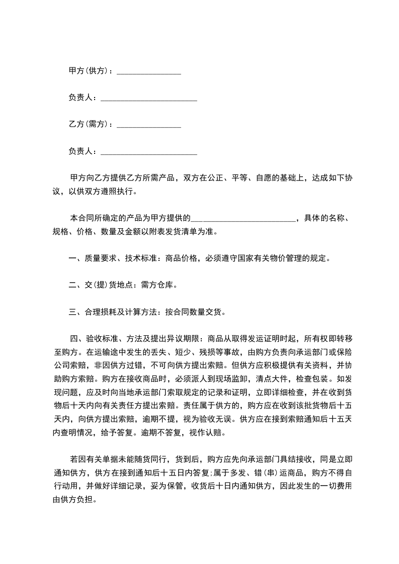 甲方向乙方提供乙方所需产品,双方在公正、平等、自愿的基础上,达成如下协议,以供双方遵照执行。