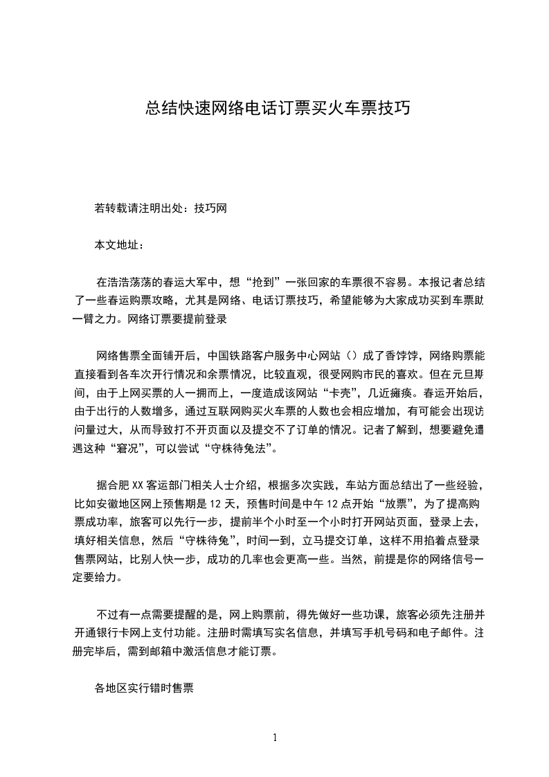 在浩浩荡荡的春运大军中,想“抢到”一张回家的车票很不容易。本报记者总结了一些春运购票攻略,尤其是网络、电话订票技巧,希望能够为大家成功买到车票助一臂之力。网络订票要提前登录