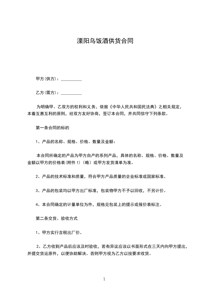 第一条合同的标的