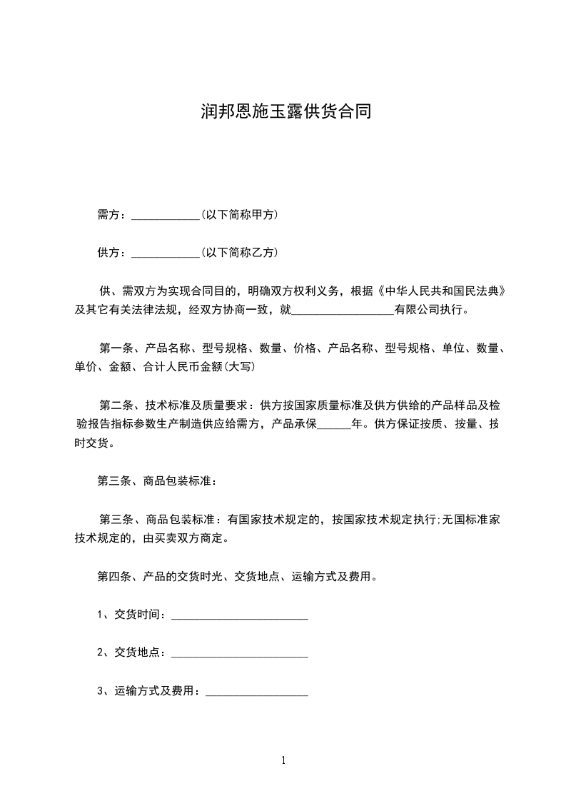 供货方:________________(以下简称甲方)
