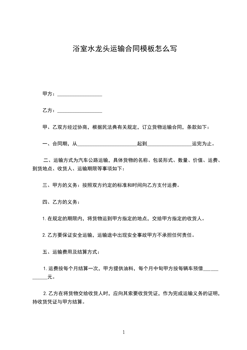 浴室水龙头买卖合同