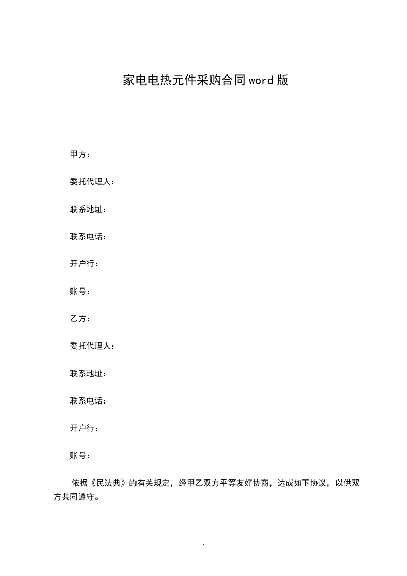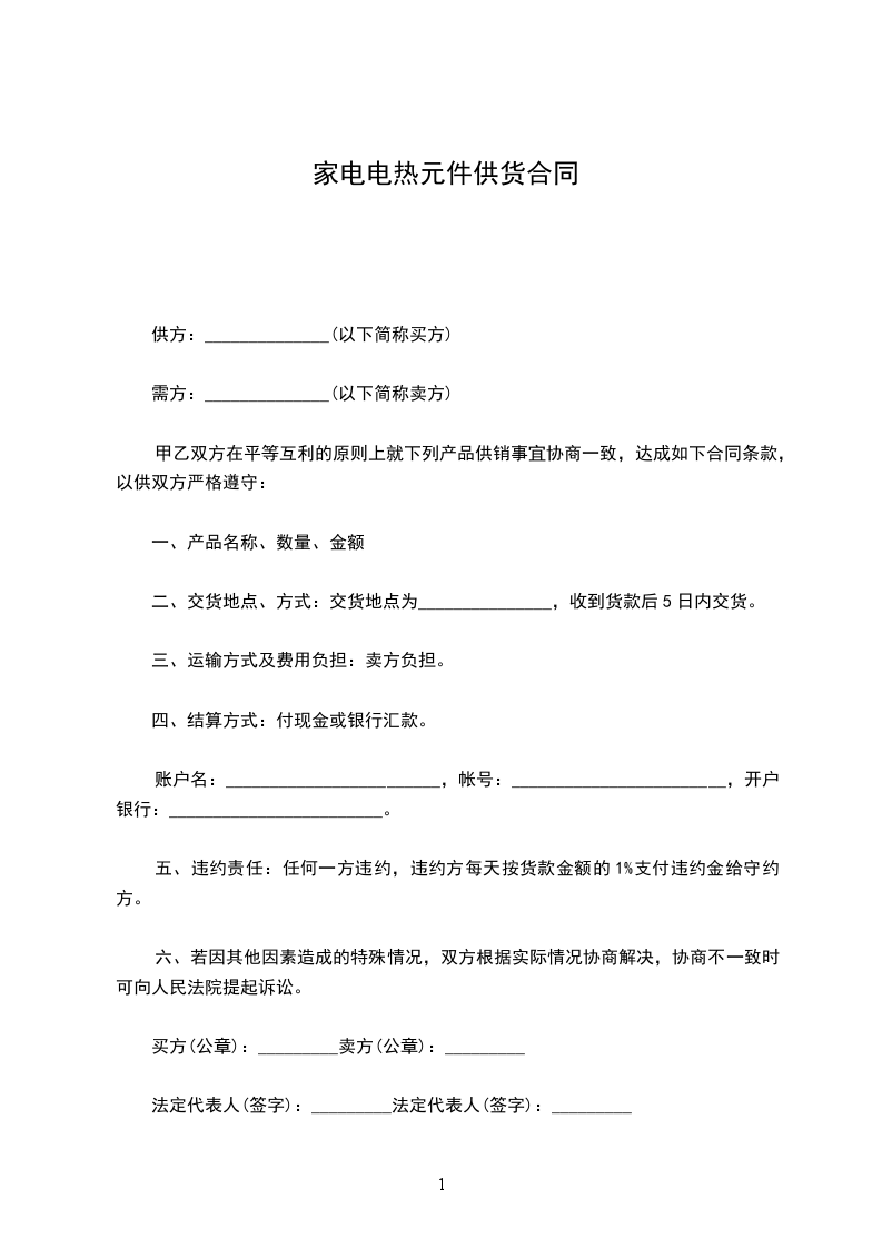 家电电热元件供货合同
