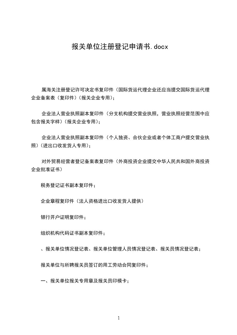 (报关单位申请用)海关: