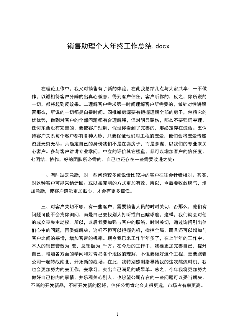 (一)确保完成全年销售任务,平时积极搜集信息并及时汇总;