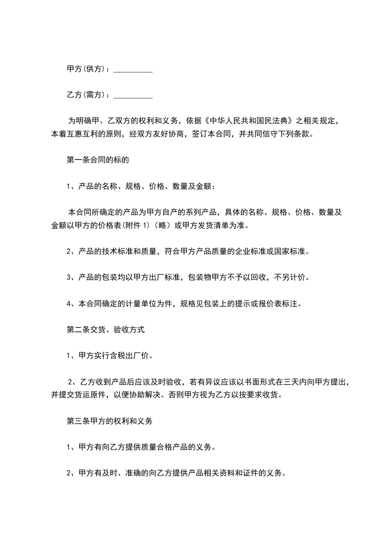 1、甲方有向乙方提供质量合格产品的义务。