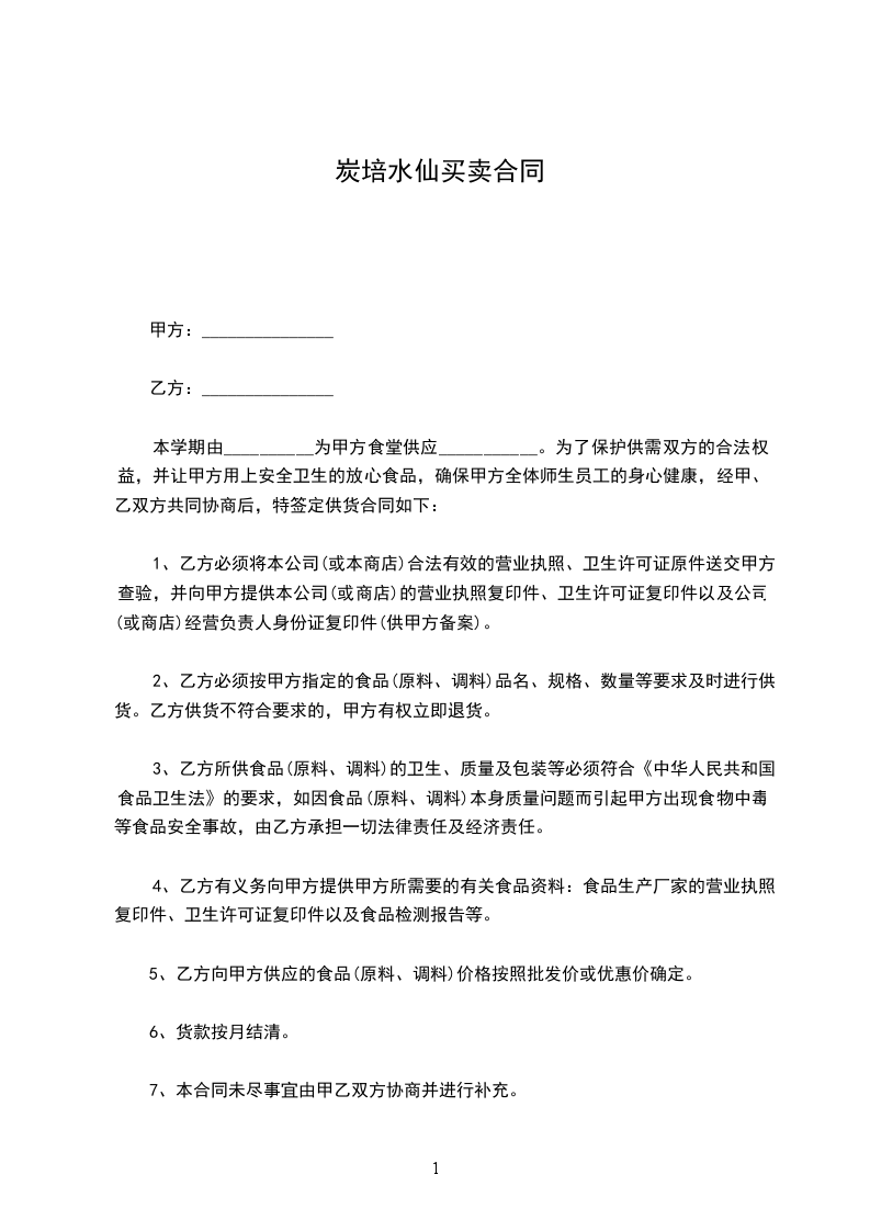 本学期由__________为甲方食堂供应___________。为了保护供需双方的合法权益,并让甲方用上安全卫生的放心食品,确保甲方全体师生员工的身心健康,经甲、乙双方共同协商后,特签定供货合同如下:
