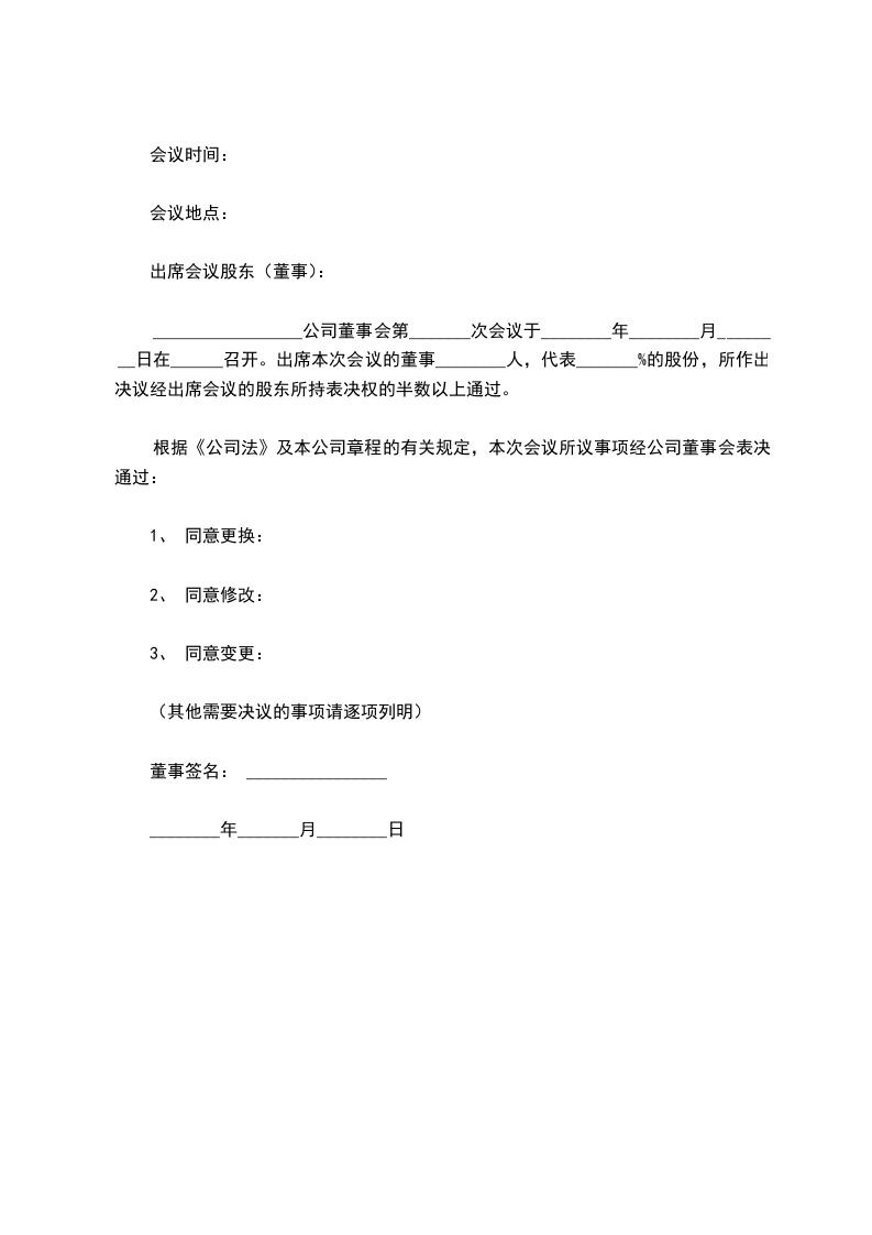 _________________公司董事会第_______次会议于________年________月________日在______召开。出席本次会议的董事________人,代表_______%的股份,所作出决议经出席会议的股东所持表决权的半数以上通过。