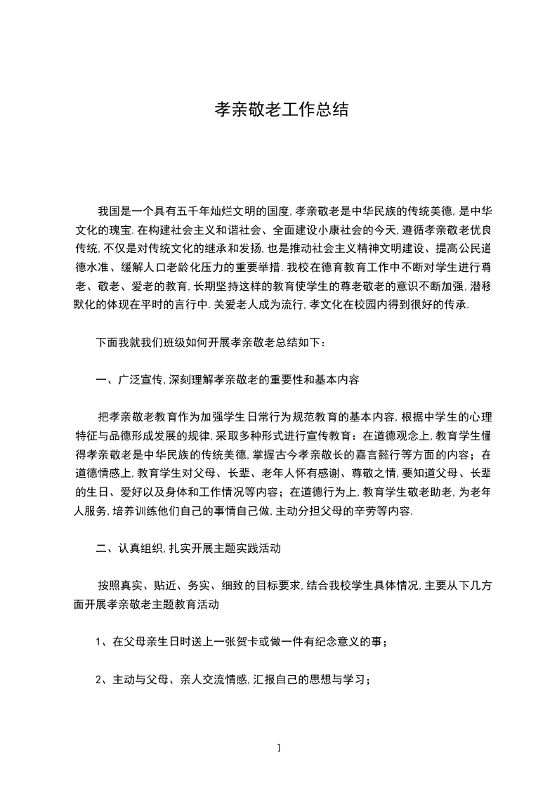 下面我就我们班级如何开展孝亲敬老总结如下: