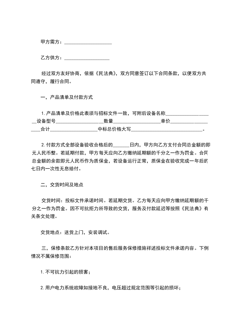 1、合同设备名称、价款及支付方式