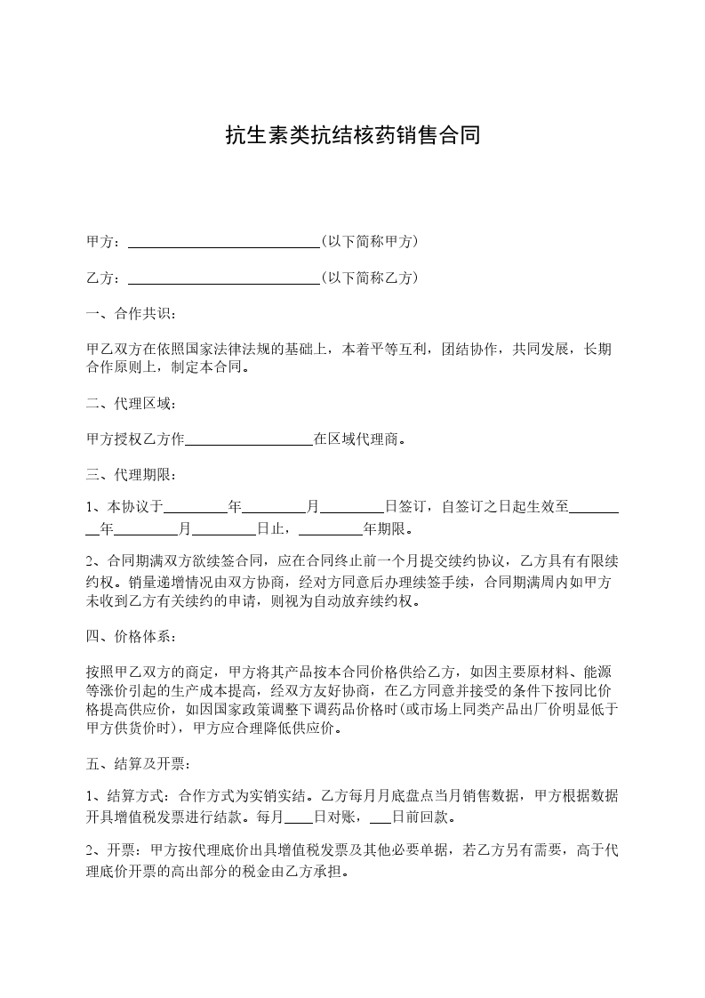 抗生素类抗结核药采购合同范本