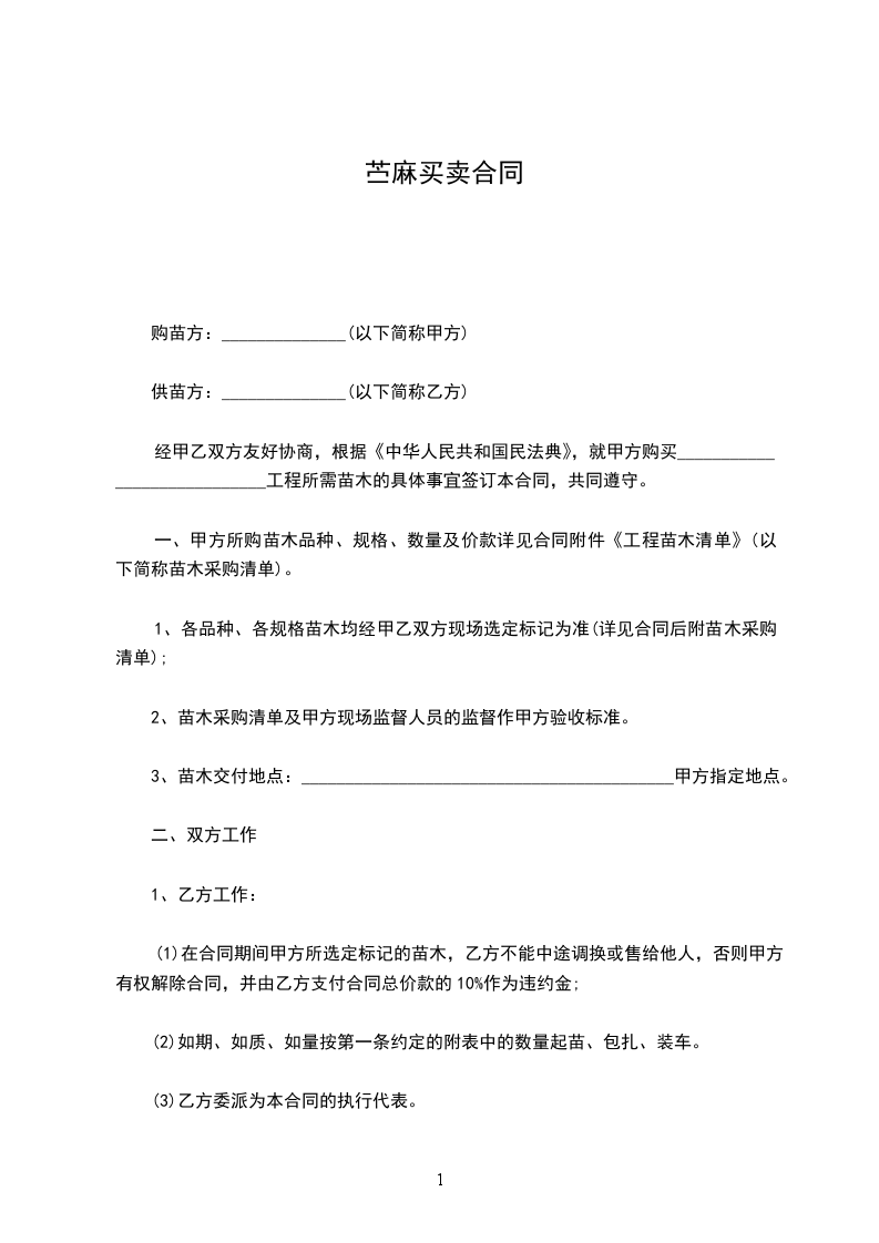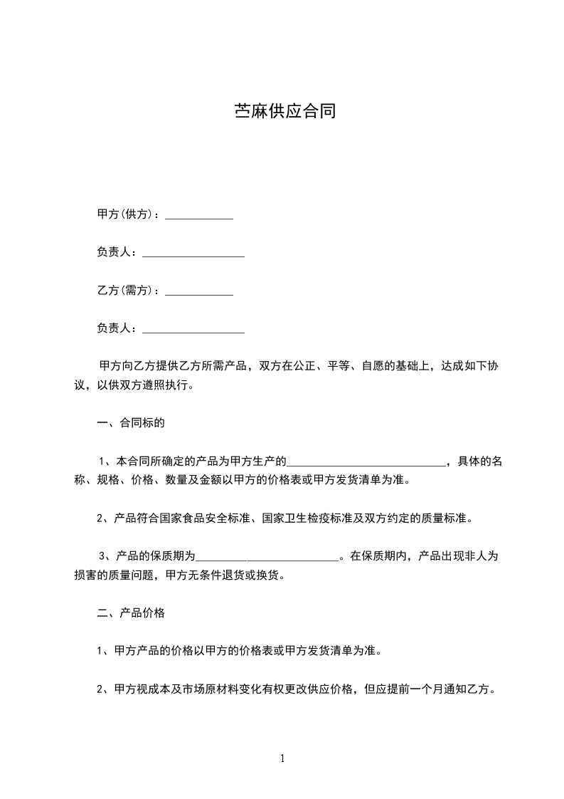 苎麻供应合同