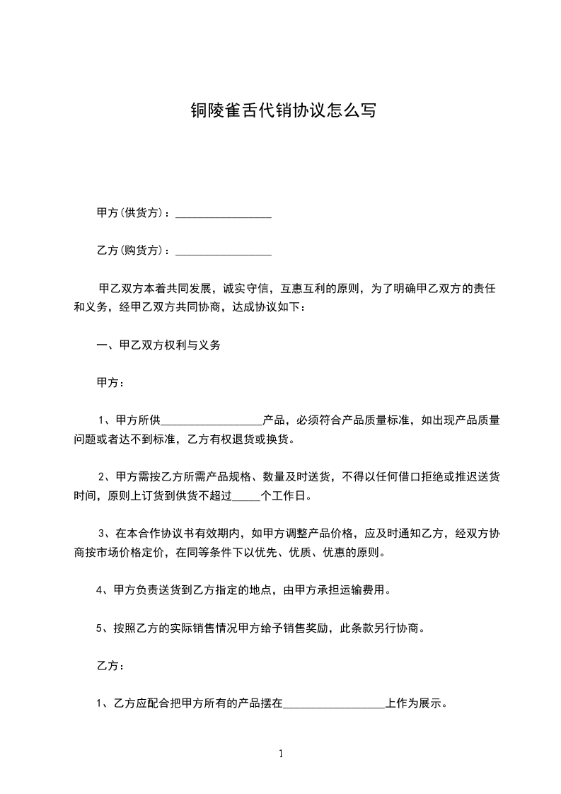 铜陵雀舌供货合同