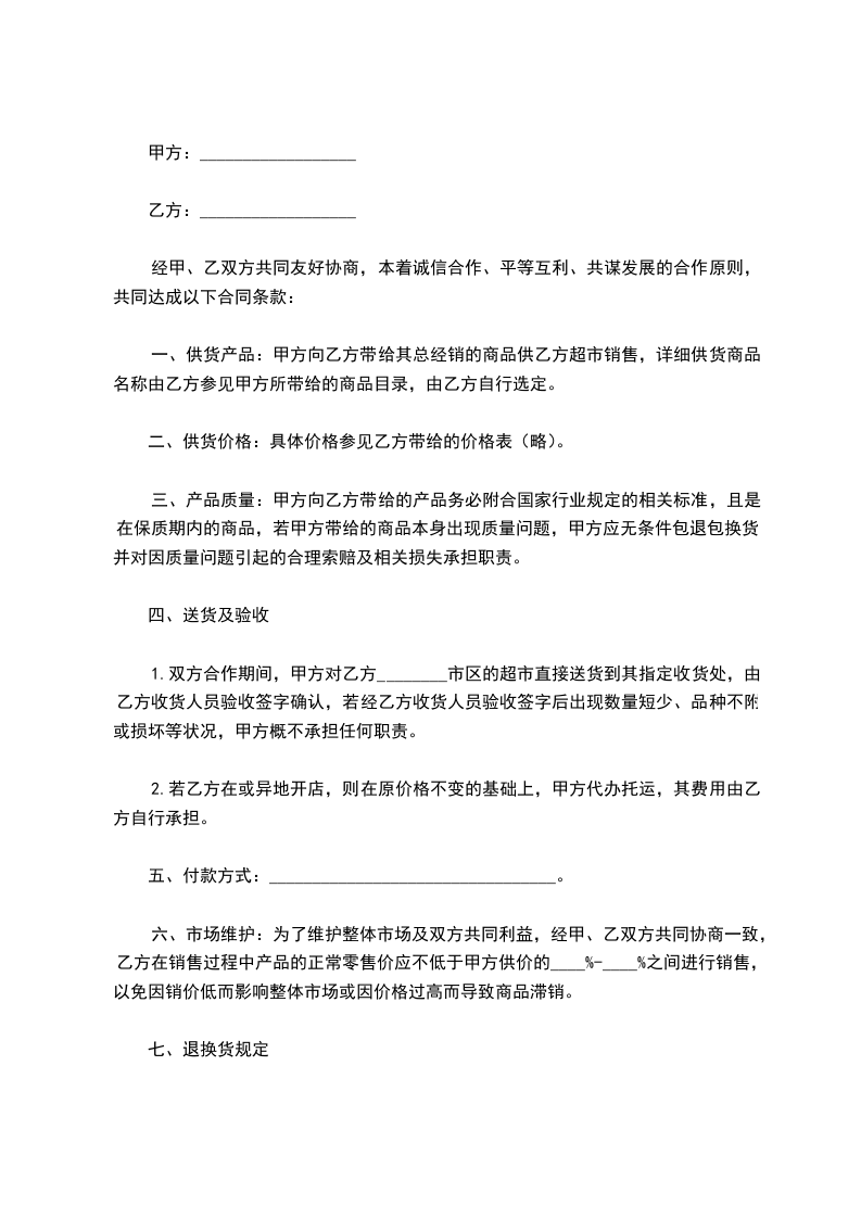 甲方向乙方提供乙方所需产品,双方在公正、平等、自愿的基础上,达成如下协议,以供双方遵照执行。