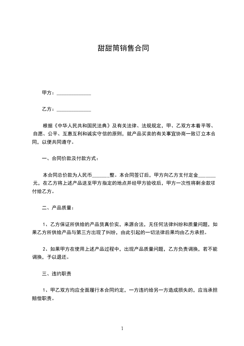 1、本合同所确定的产品为甲方生产的____________________________,具体的名称、规格、价格、数量及金额以甲方的价格表或甲方发货清单为准。