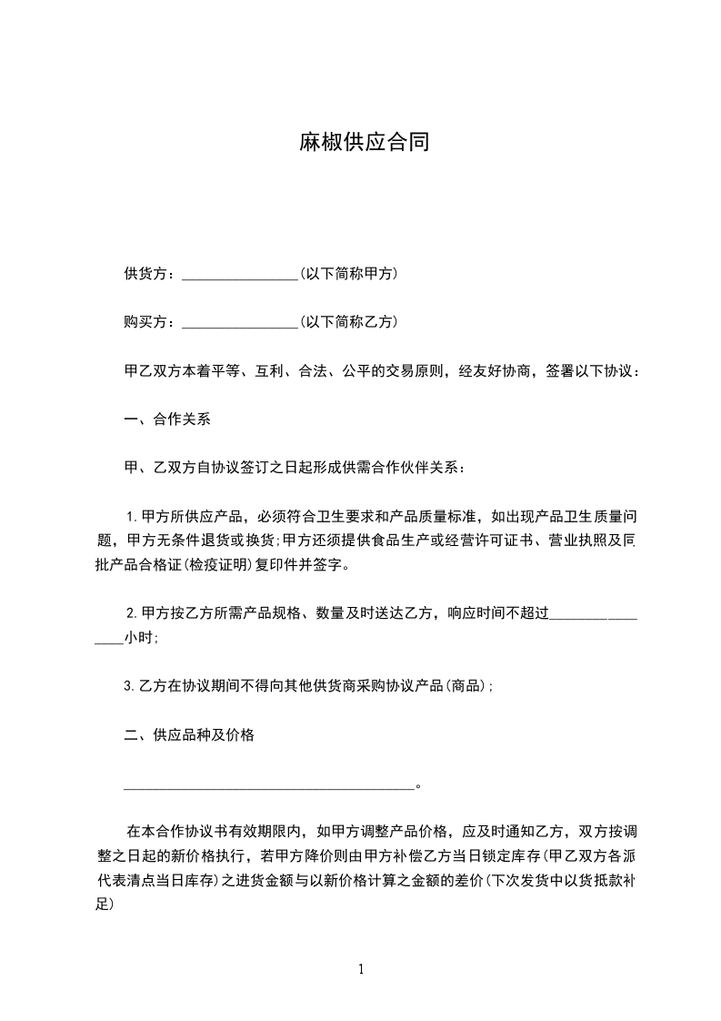 一、甲方为乙方的___________专供商,供货期限________年____月____日至_______年_______月_______日止。合同期间甲方单独为乙方供给_______________,乙方不再从其它渠道进货,如发现从其他渠道进货的问题。乙方应承担甲方的经济损失。甲方单独与乙方配送货物,如甲方违反规定乙方追究甲方经济职责并承担乙方全部损失。