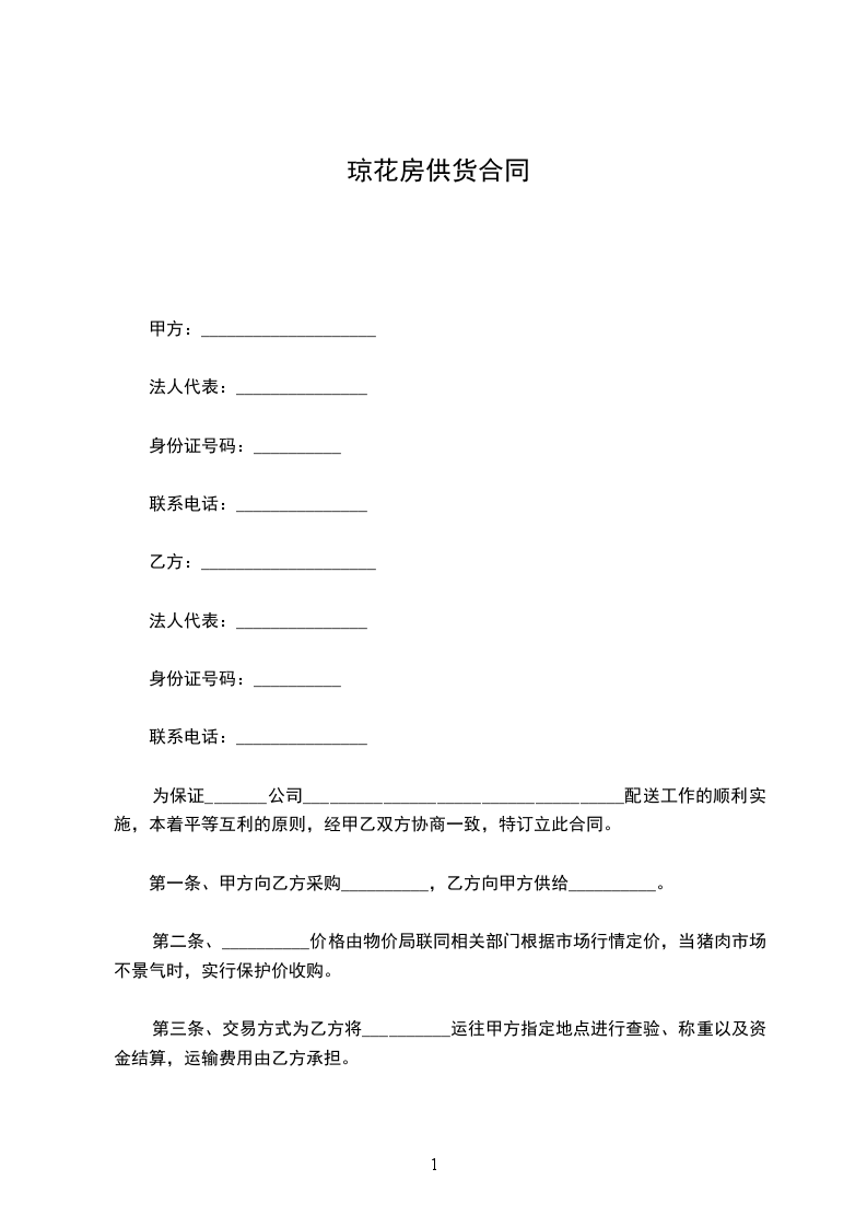 第一条、甲方向乙方采购__________,乙方向甲方供给__________。