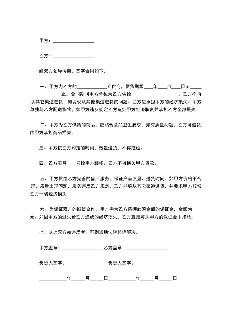 5、甲方提供不超过生产日期______天的产品给乙方,否则乙方有权拒收。
