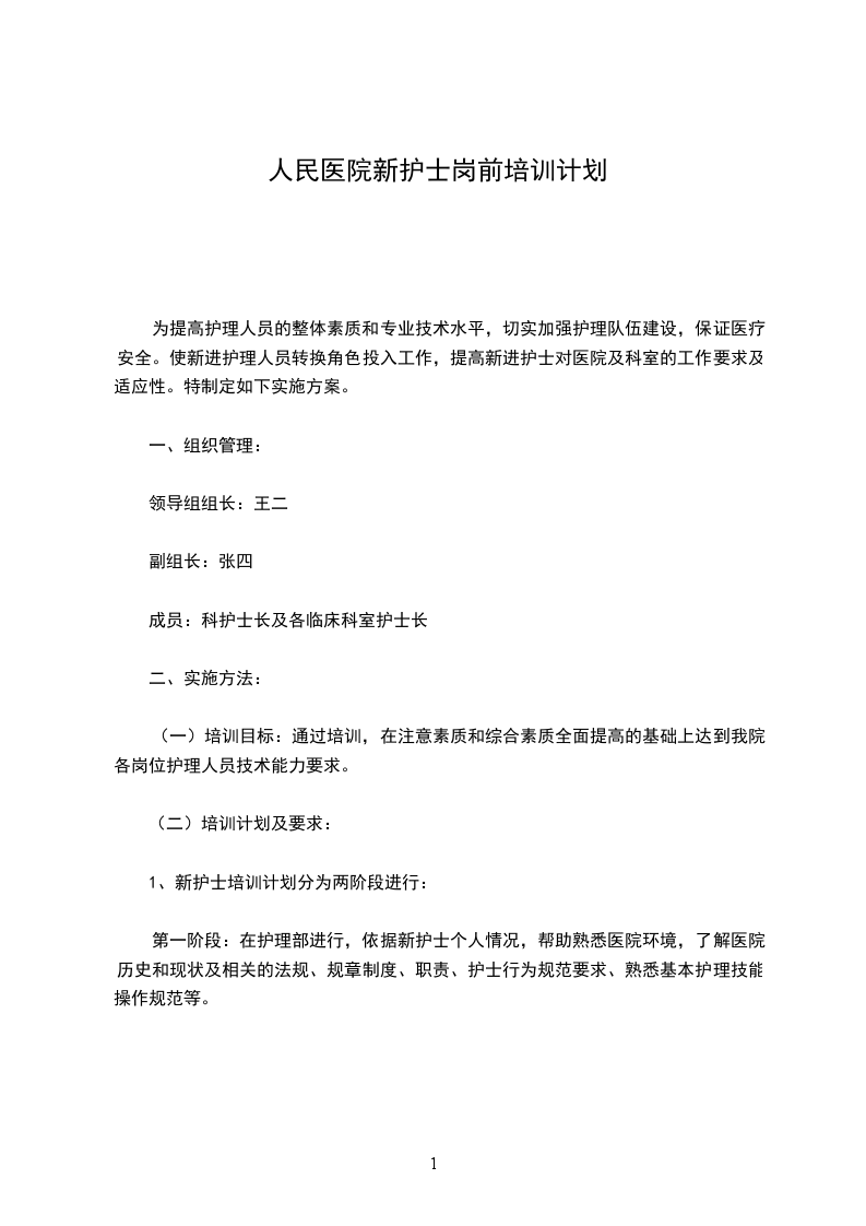 能、工作职责及流程,明确培训责任人和完成时间。由护士长介绍培训计划,使新进人员了解培训目标、内容及考核方式。教学老师对照计划按时间完成培训。