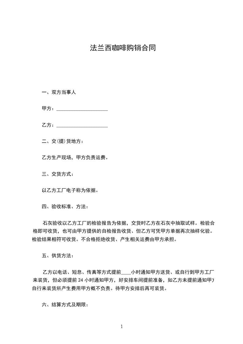 六、结算方式:甲方应在乙方货到之日,验收合格后一次付清全款。
