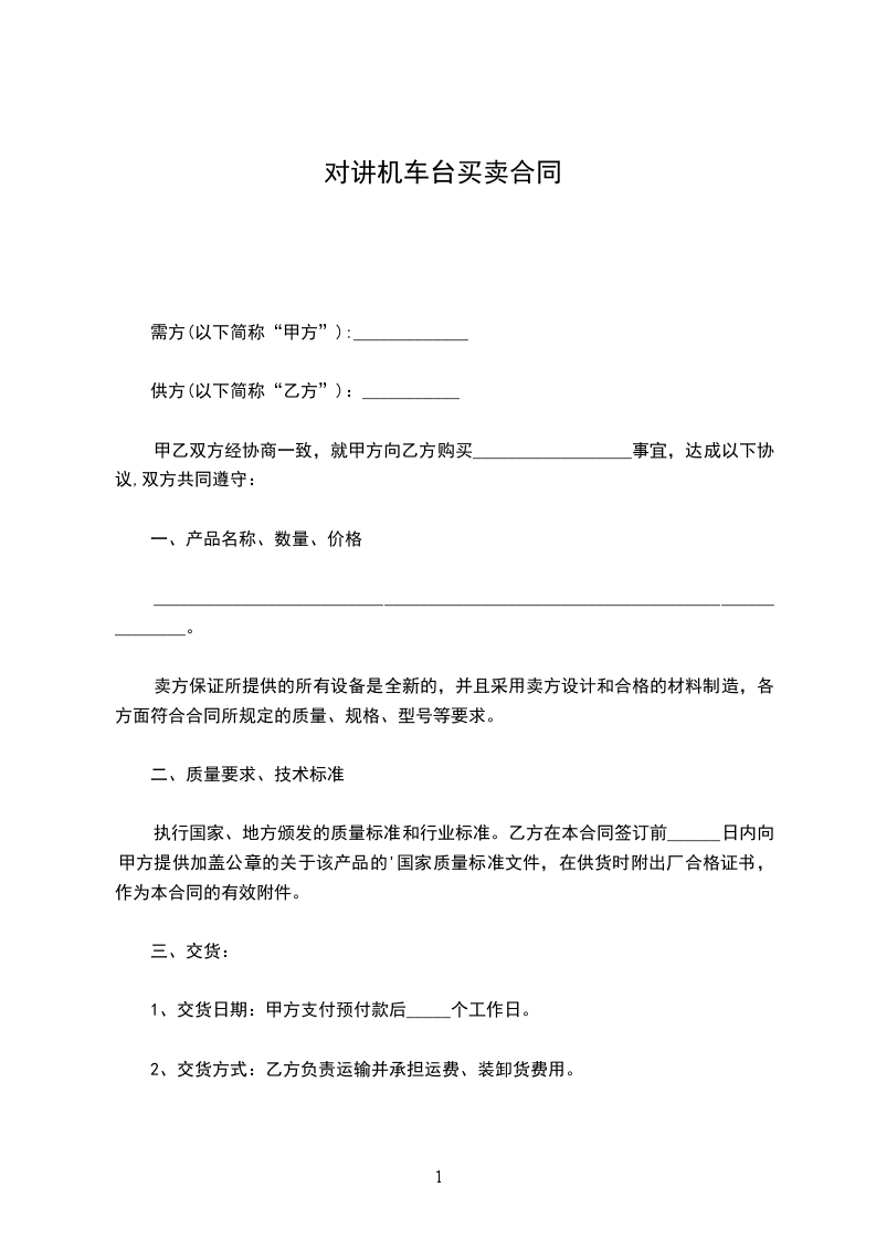 1、交货日期:甲方支付预付款后_____个工作日。