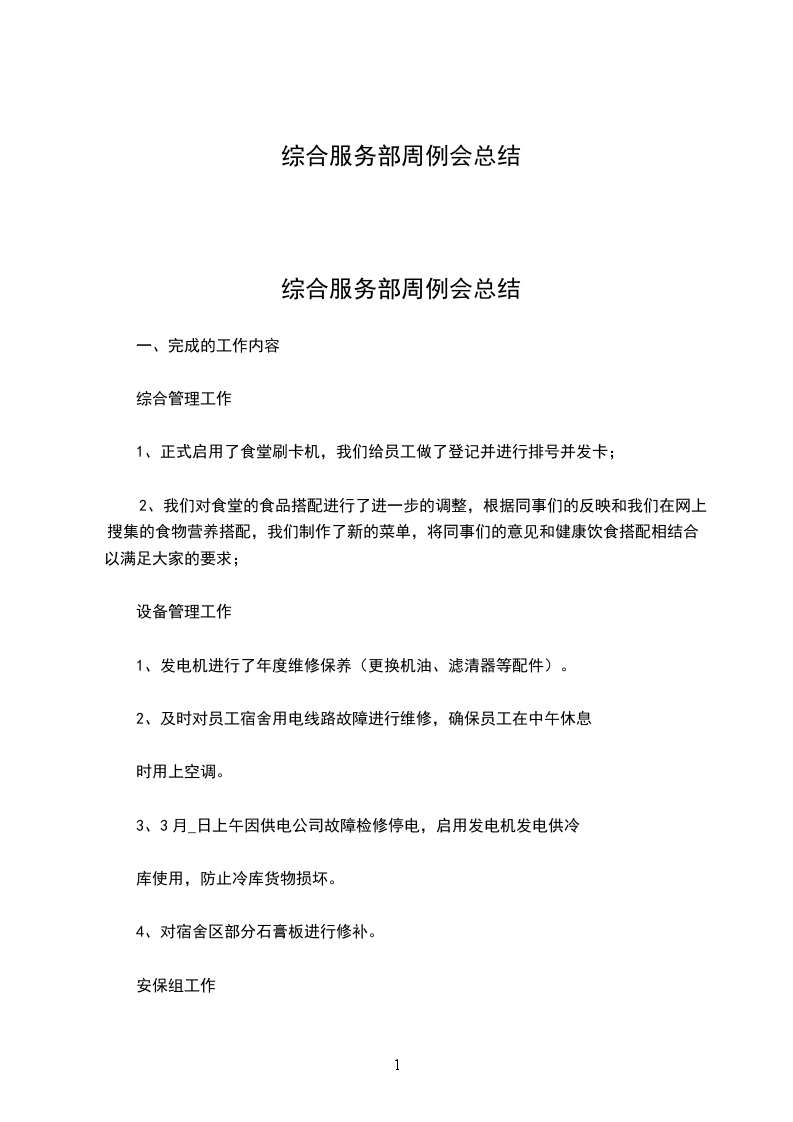 综合服务部周例会总结