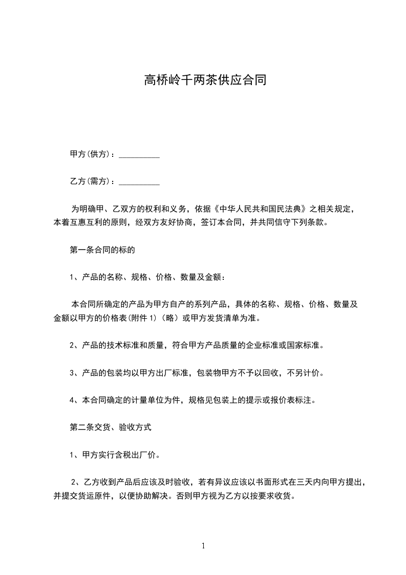1、甲方实行含税出厂价。