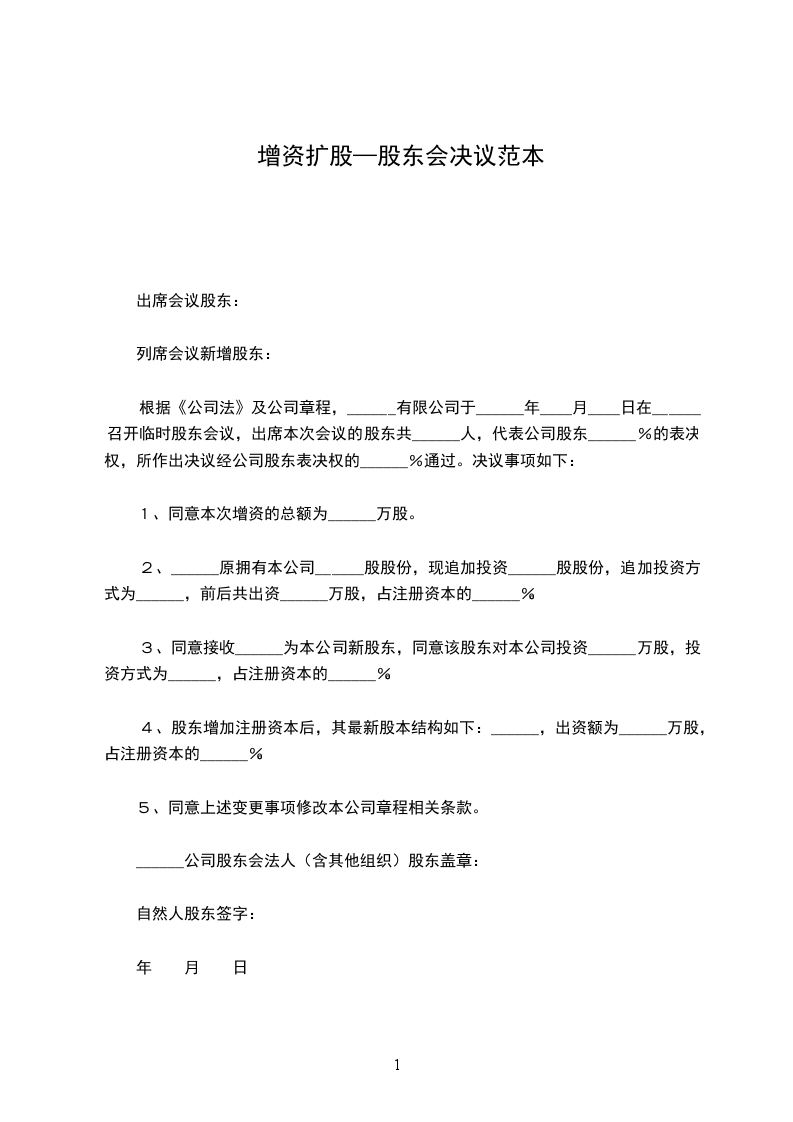 3、同意接收______为本公司新股东,同意该股东对本公司投资______万股,投资方式为______,占注册资本的______%。