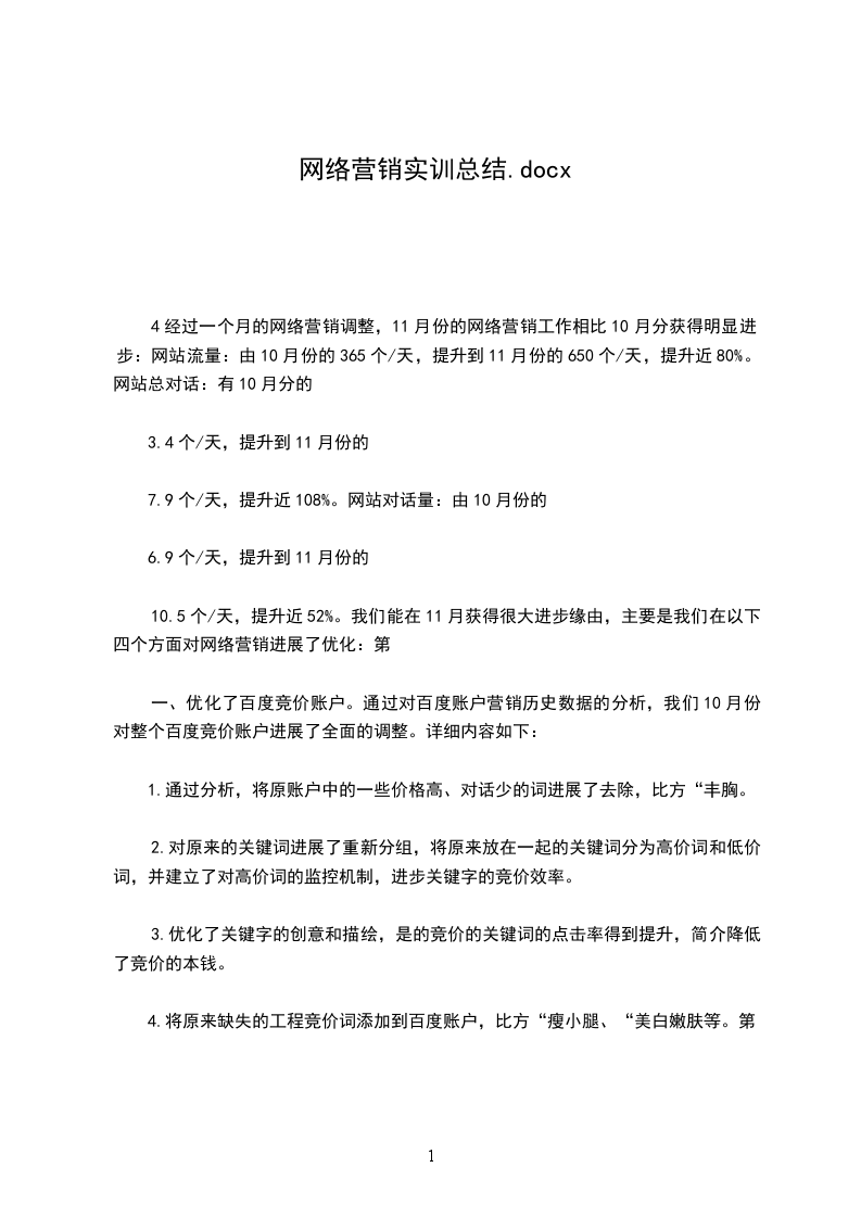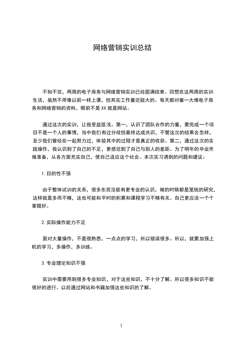 通过这些实训,我的实际操作能力,也得到了进一步提升。不仅在这些网络营销知识上有了提高,而且在组织协调方面学到了很多,还有在最终整合时,对论文格式,word等操作工具有了跟好的学习。总之,这次实习,对我来说是个很好的机会,我会抓住这次机会的。