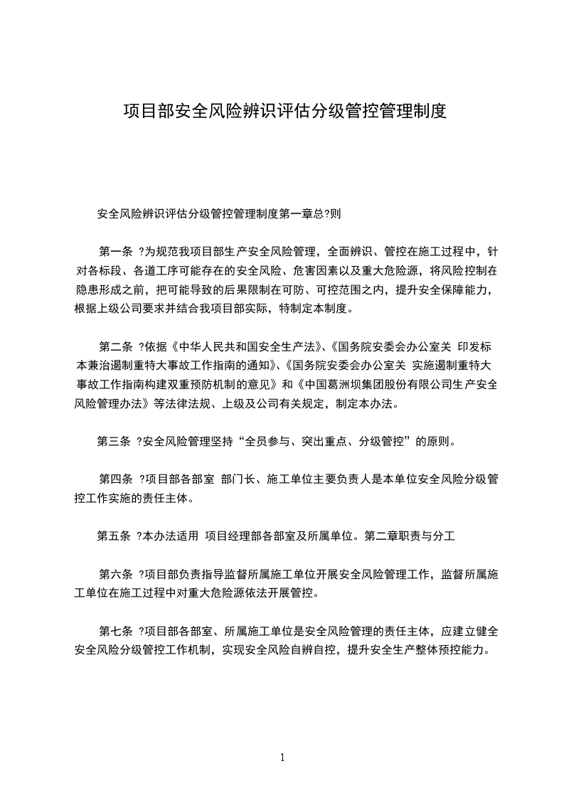 安全风险辨识评估分级管控管理制度第一章总?则
