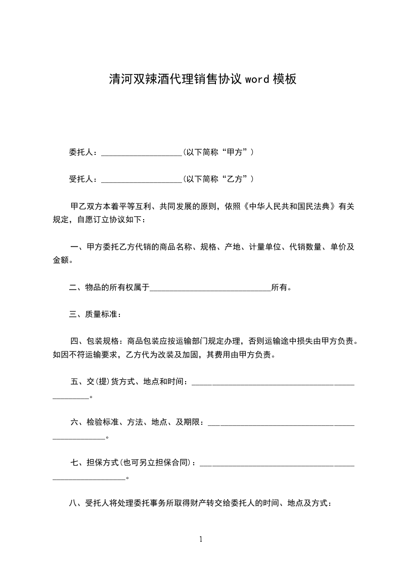 清河双辣酒供货合同