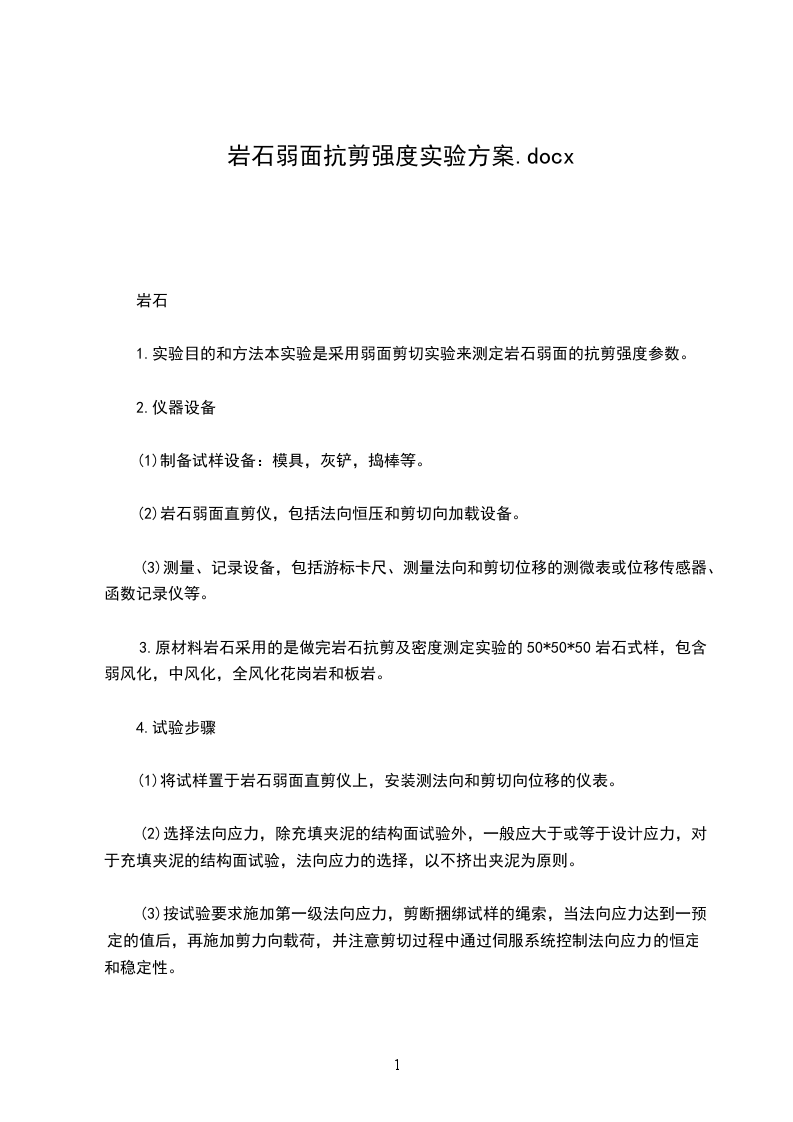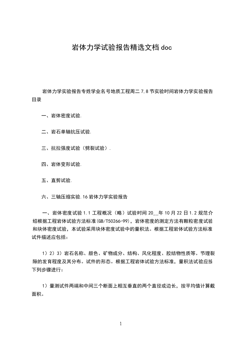 本实验课程的基本理论:岩石在拉伸和压缩荷载作用下的关系及破坏机理,实验技术知识:液压万能试验机、直剪仪、三轴试验机的正确使用方法。