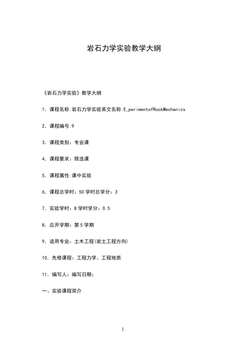 1.课程名称:岩石力学实验英文名称:E_perimentofRockMechanics