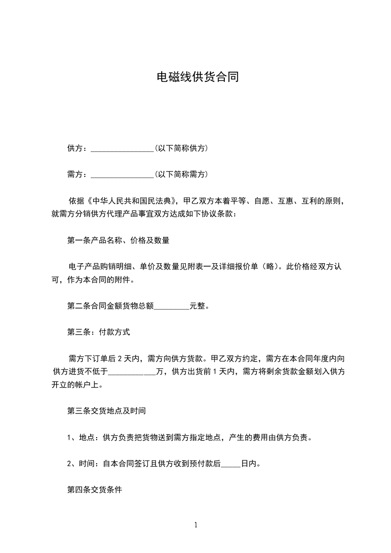 供方:(盖章)____________________需方:(盖章)_____________________
