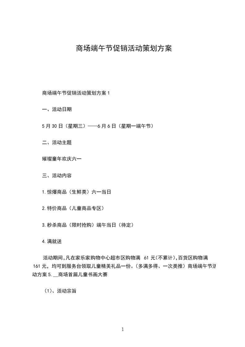 二、 快讯档期5月27日6月09日《金色童年,快乐六一》6月10日6月24日《端午节靓粽,购物满就送》第一部分端午节促销方案