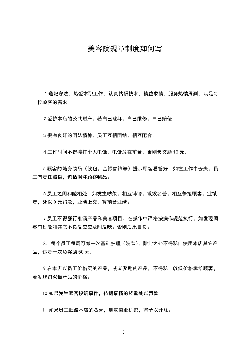 8、每个员工每周可做一次基础护理(院装),除此之外不得私自使用本店其它产品,违者一次负奖励50元.