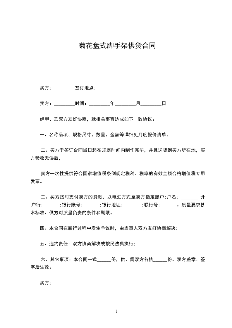 六、其它事项:本合同一式______份,供、需双方各执______份。双方盖章、签字后生效。