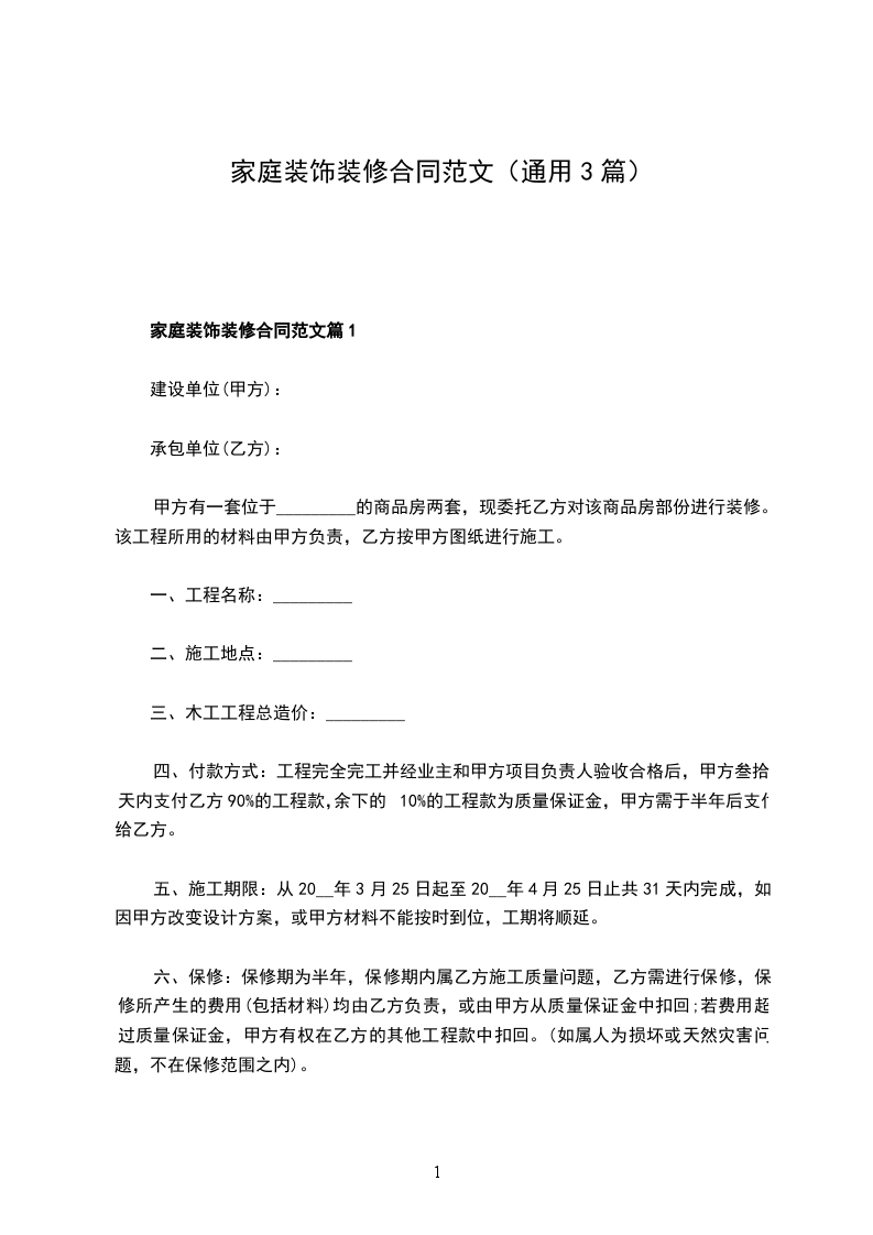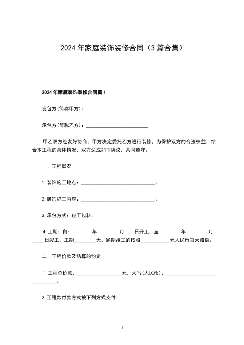 2024年家庭装饰装修合同篇1