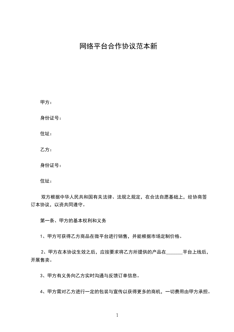 1、甲方可获得乙方商品在微平台进行销售,并能根据市场定制价格。