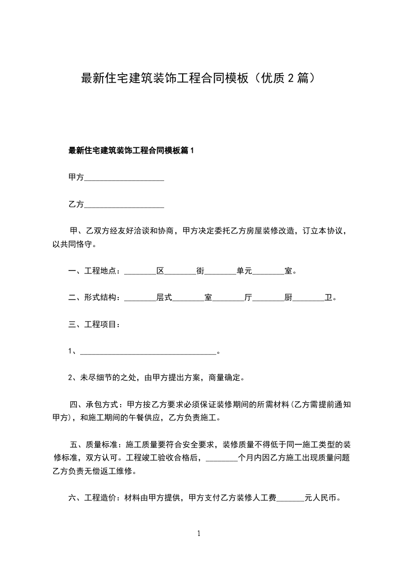 最新住宅建筑装饰工程合同模板篇2