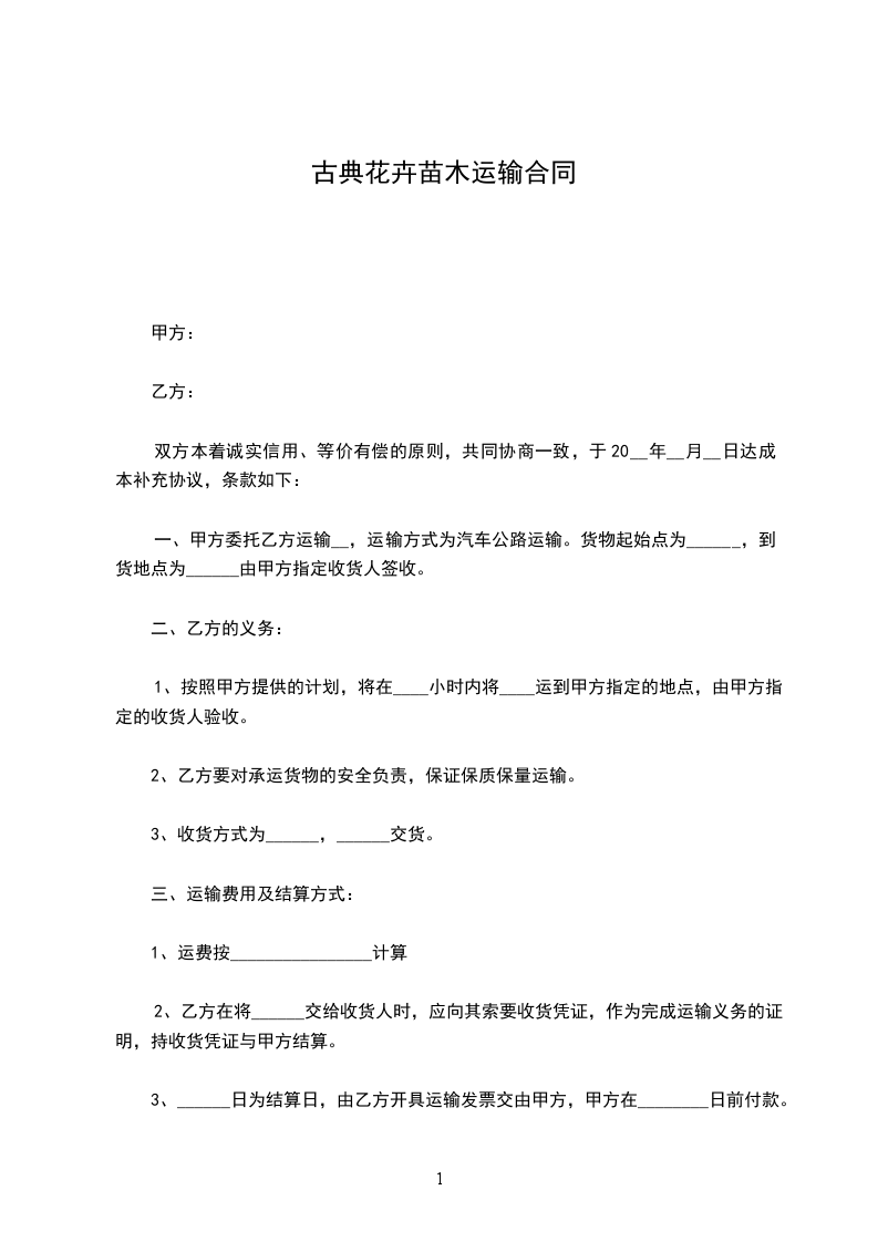 4、本合同为苗木买卖合同,乙方不承担甲方苗木成活率任何风险,但有为甲方提供技术指导的义务。