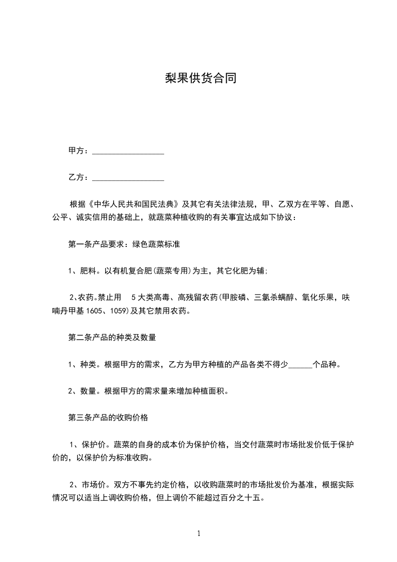 根据《中华人民共和国民法典》及其它有关法律法规,甲、乙双方在平等、自愿、公平、诚实信用的基础上,就蔬菜种植收购的有关事宜达成如下协议: