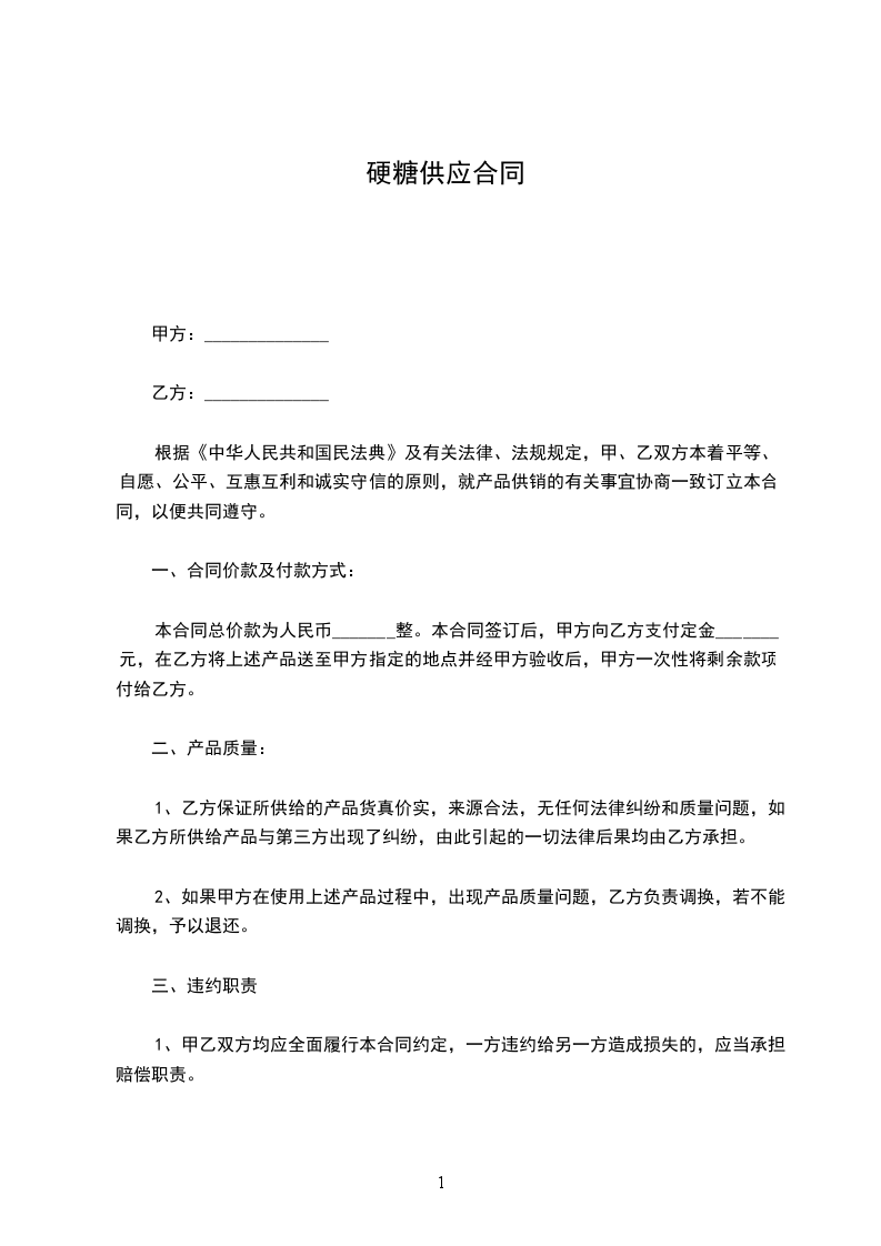 糖供应合同