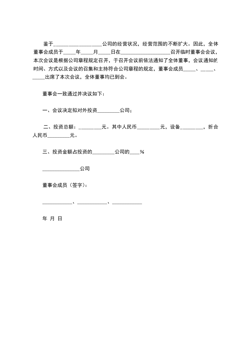 鉴于___________________公司的经营状况,经营范围的不断扩大。因此,全体董事会成员于_____年_____月_____日在____________________召开临时董事会会议,本次会议是根据公司章程规定召开,于召开会议前依法通知了全体董事,会议通知的时间、方式以及会议的召集和主持符合公司章程的规定,董事会成员_____、_____、_____出席了本次会议,全体董事均已到会。