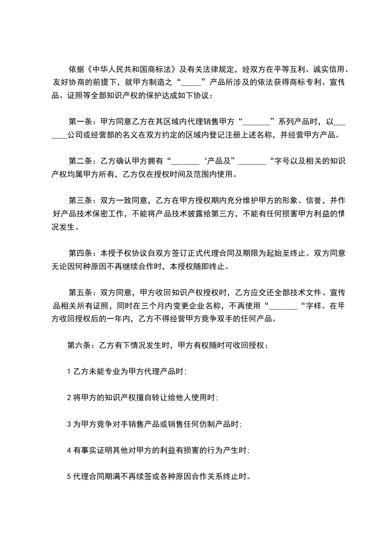 1.根据双方所签合作协议,乙方视情况可使用甲方拥有的或有权使用的以下知识产权的一种或数种: