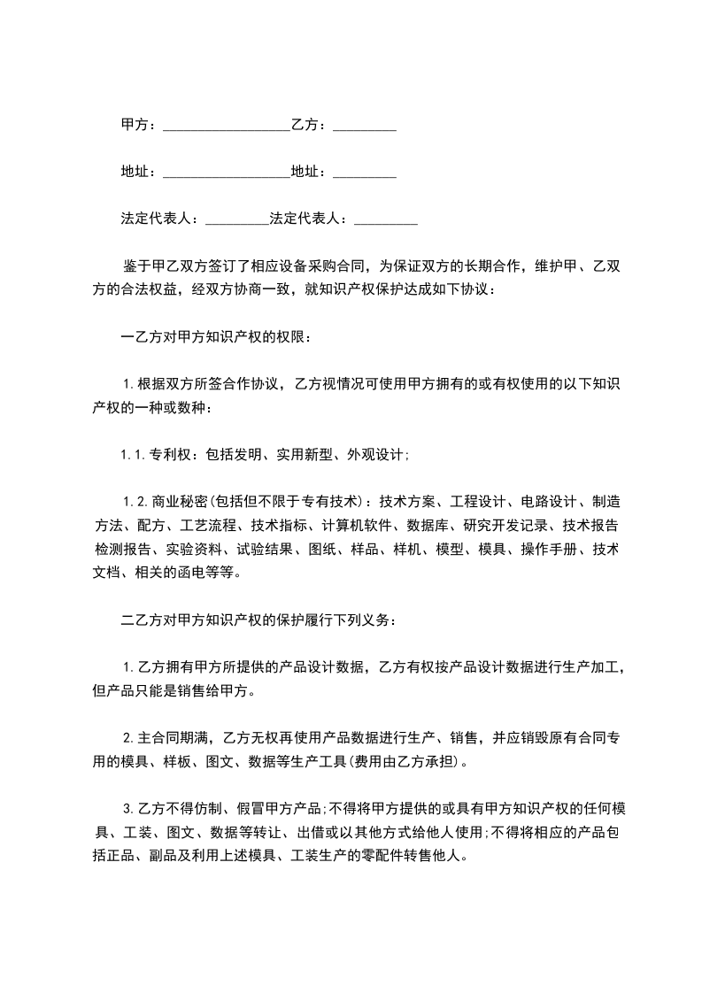 鉴于甲乙双方签订了相应设备采购合同,为保证双方的长期合作,维护甲、乙双方的合法权益,经双方协商一致,就知识产权保护达成如下协议: