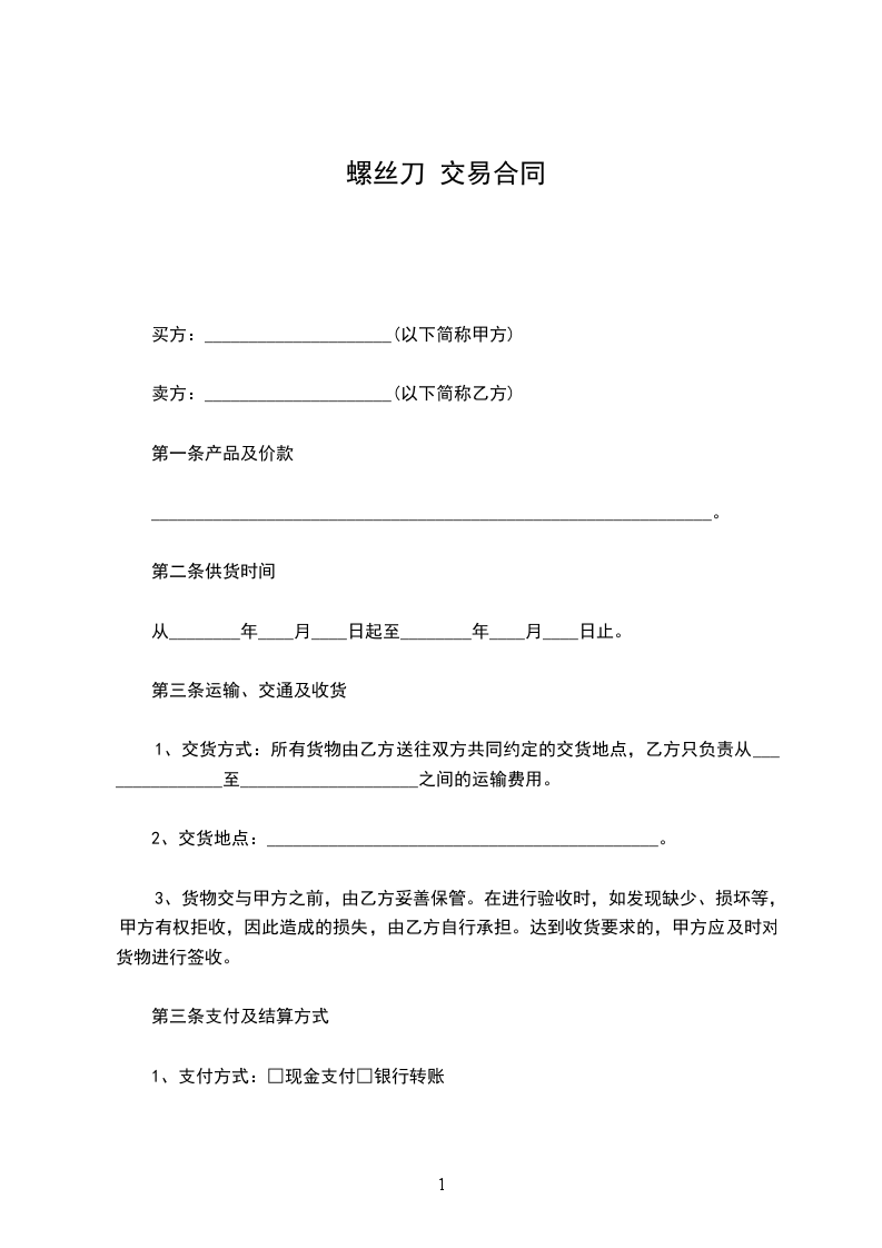 1、交货方式:所有货物由乙方送往双方共同约定的交货地点,乙方只负责从_______________至____________________之间的运输费用。