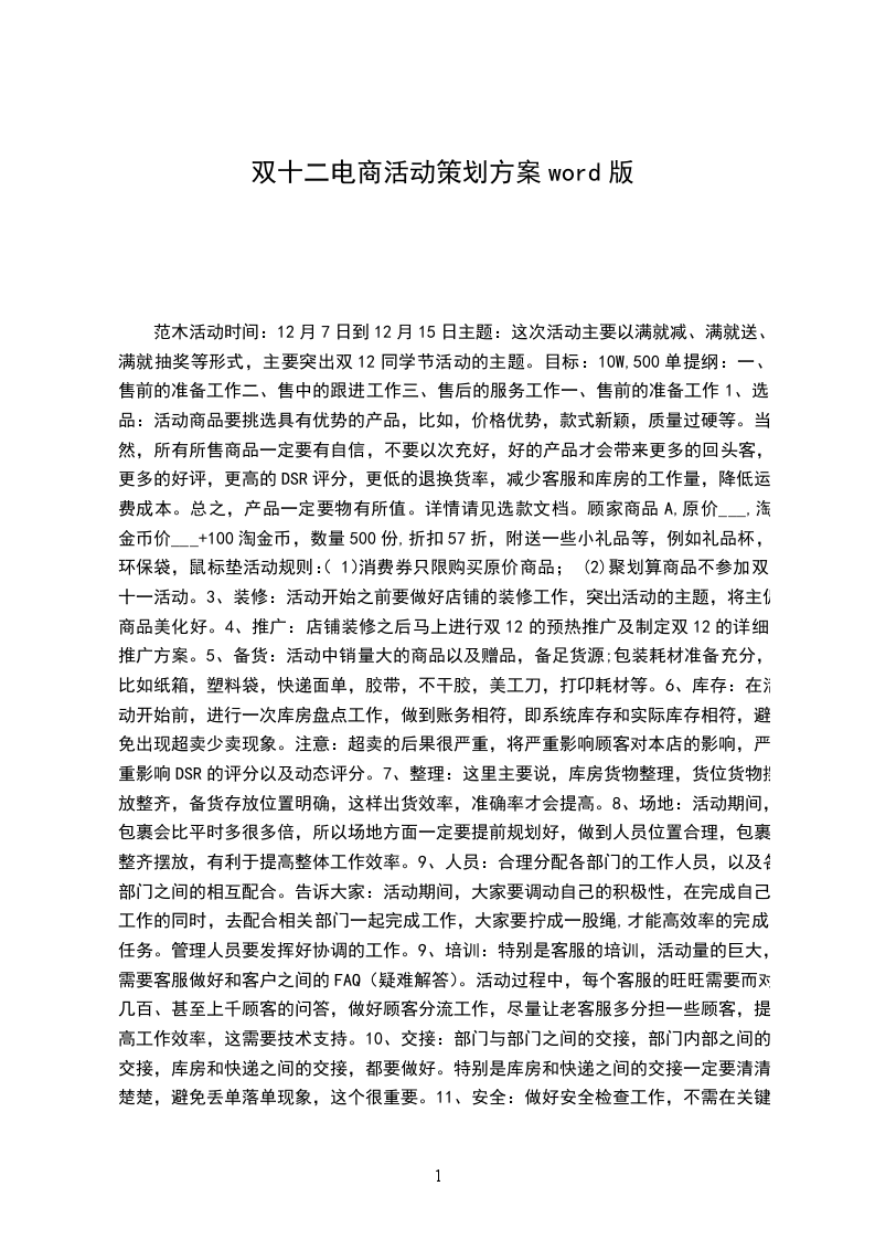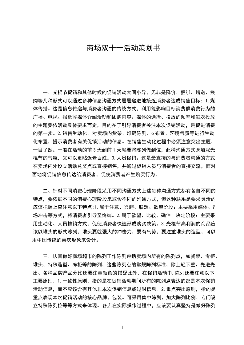 双十一电商商业策划书